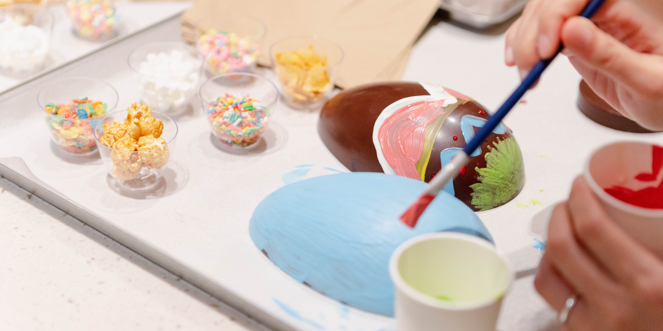 Decorate, fill, and seal your own Chocolate Easter Egg at our Dempsey Factory!